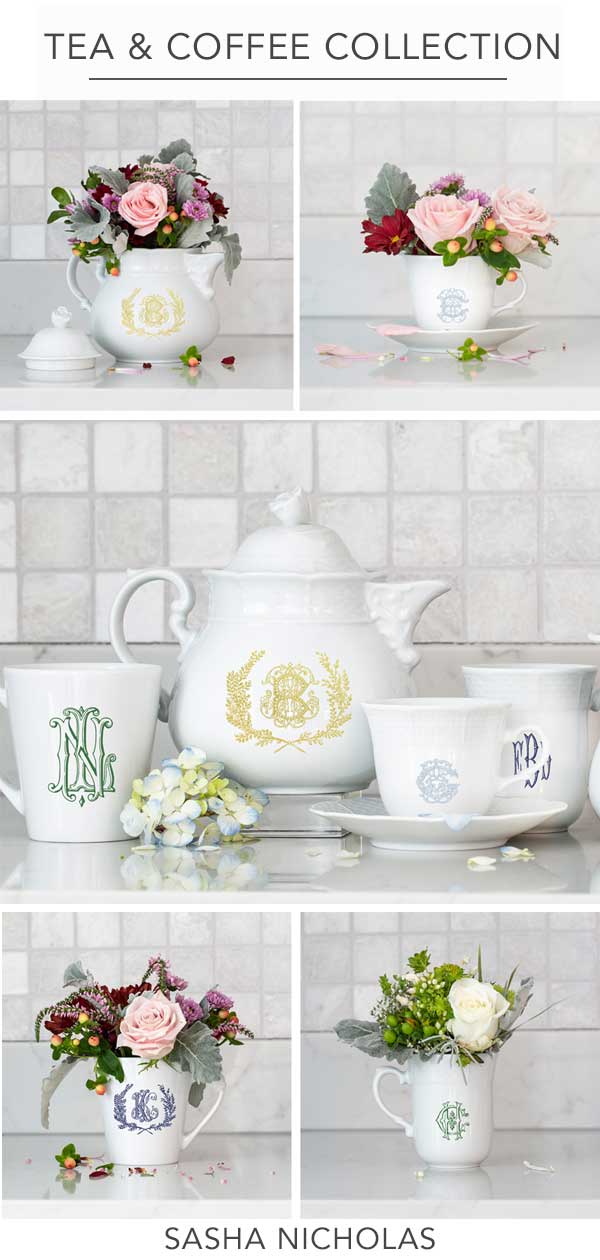 It's time to start the parTEA as we introduce the new Sasha Nicholas custom monogrammed Tea & Coffee Collection. Just in time for Mother's day these gorgeous pieces make the perfect gift! Each piece is hand made with the finest porcelain, and can be personalized with our Sasha Nicholas custom monograms in any of our Sasha Nicholas font colors - Click here to see the entire collection.